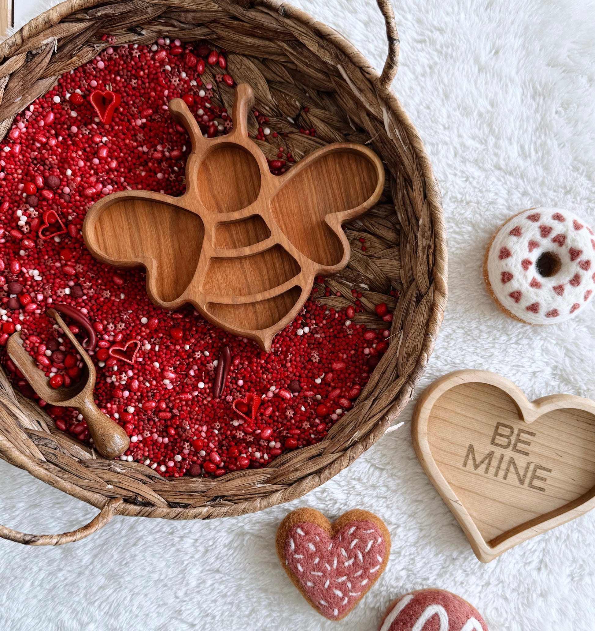Introduce your child to the fascinating world of bees with our Bee Tray! Crafted from durable Cherry wood, this tray is ideal for sensory play, perfect for celebrating national bee day in May. Encourage your child to explore and learn about these important creatures in a fun and engaging way.